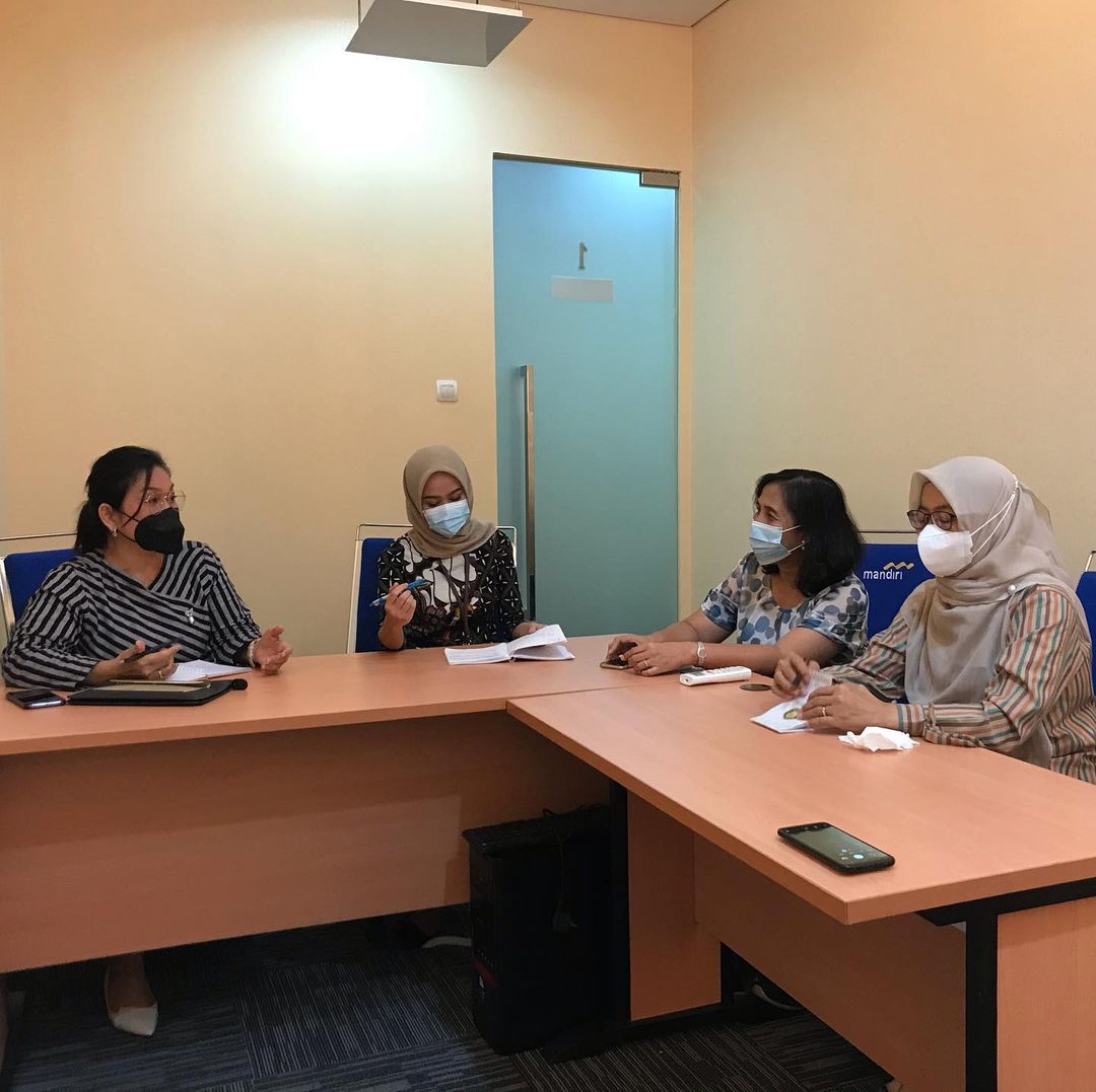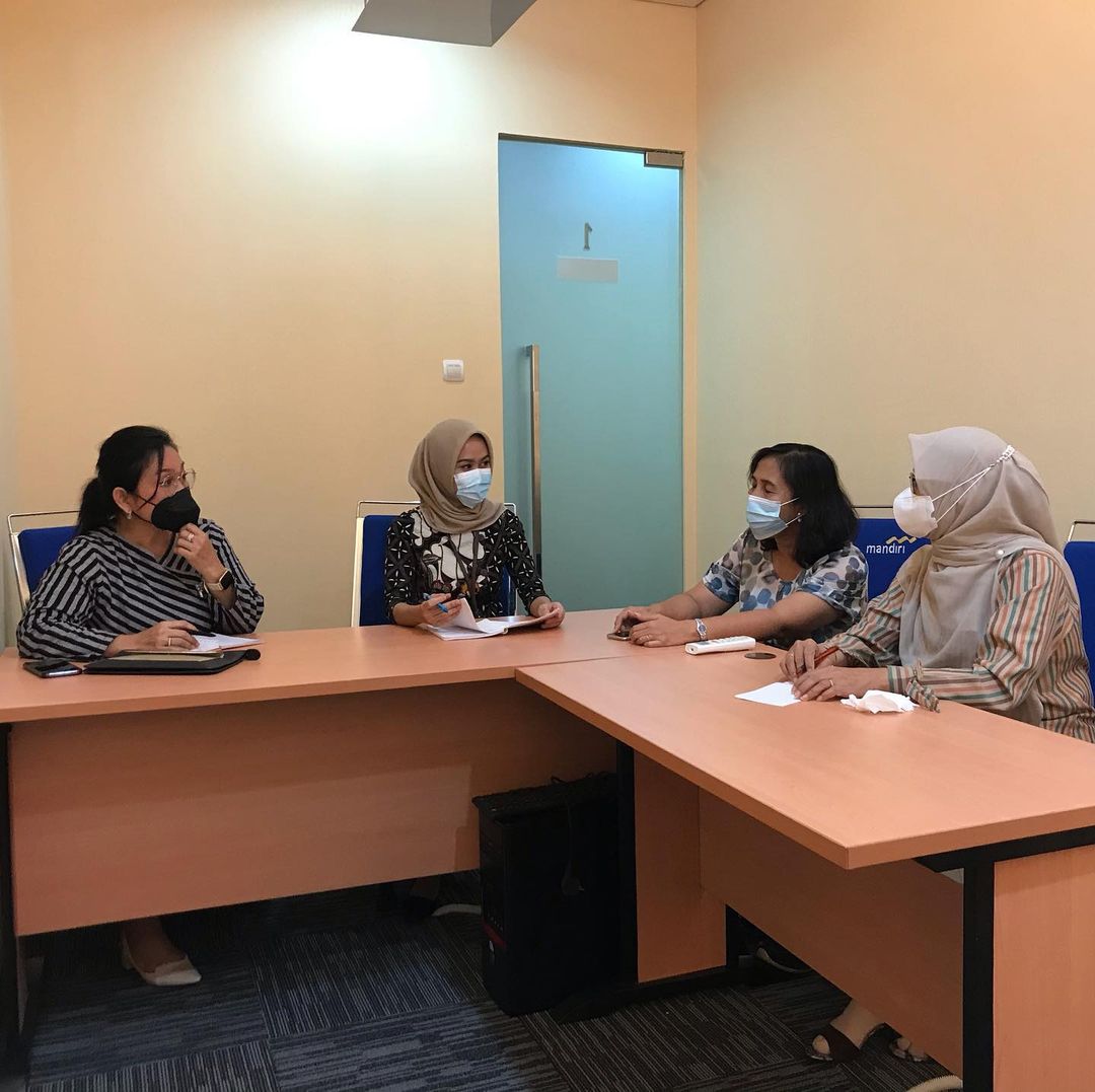 Kepala Lembaga PPKLKM Ir. petiana melakukan diskusi dengan kepala inkubator bisnis FEB untuk persiapan launching Galeri Kewirausahaan tingkat Universitas Pancasila.