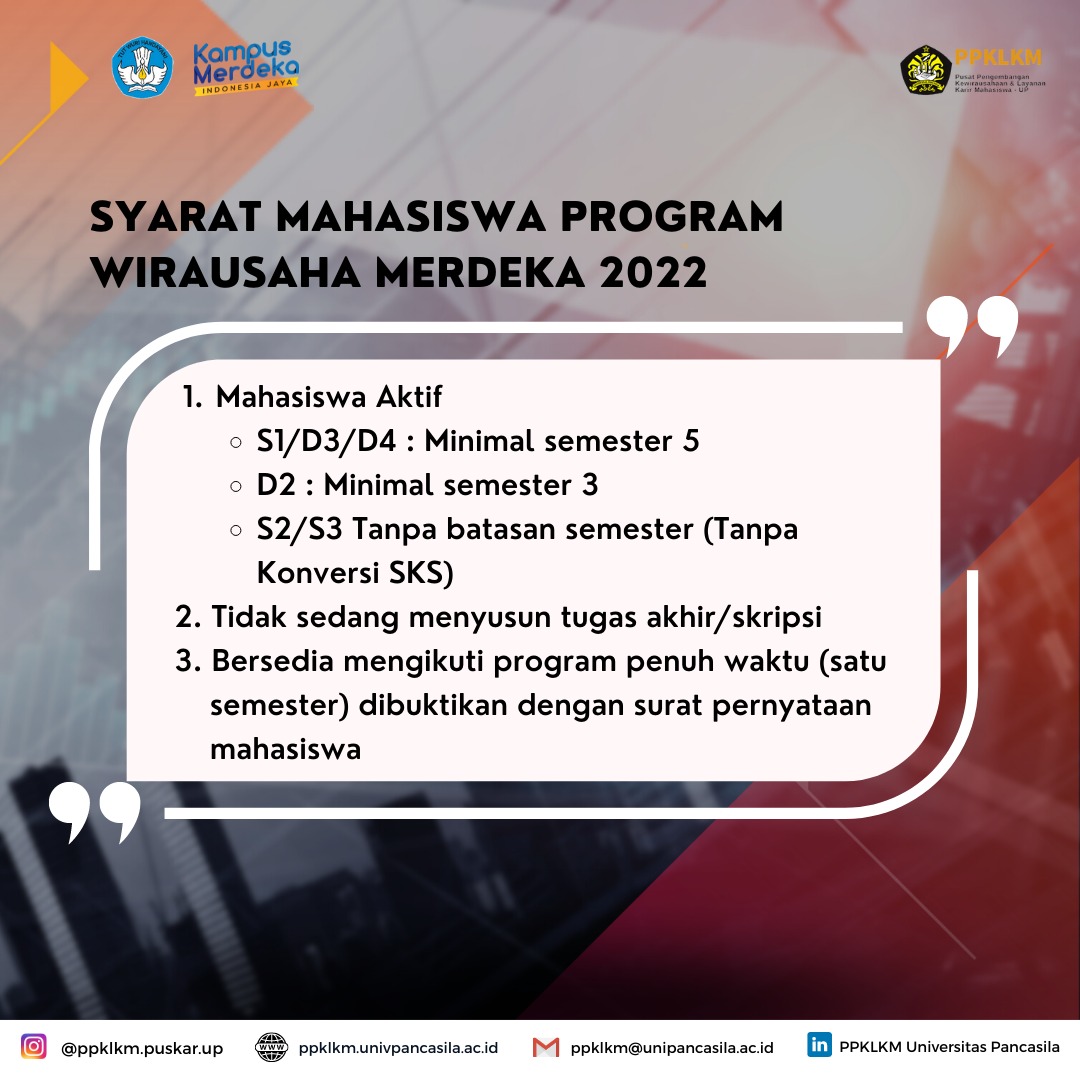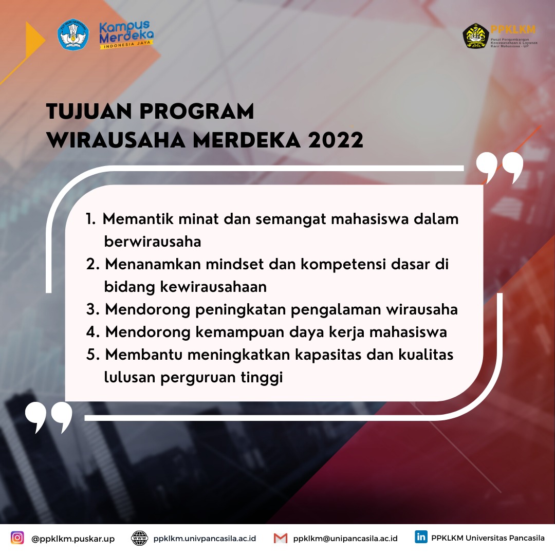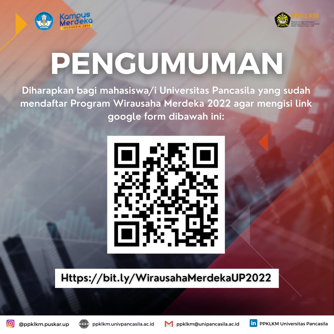 Diharapkan bagi mahasiswa/i Universitas Pancasila yang memiliki ketertarikan atau yang sudah mendaftar Program Wirausaha Merdeka 2022 agar mengisi link google form dibawah ini :