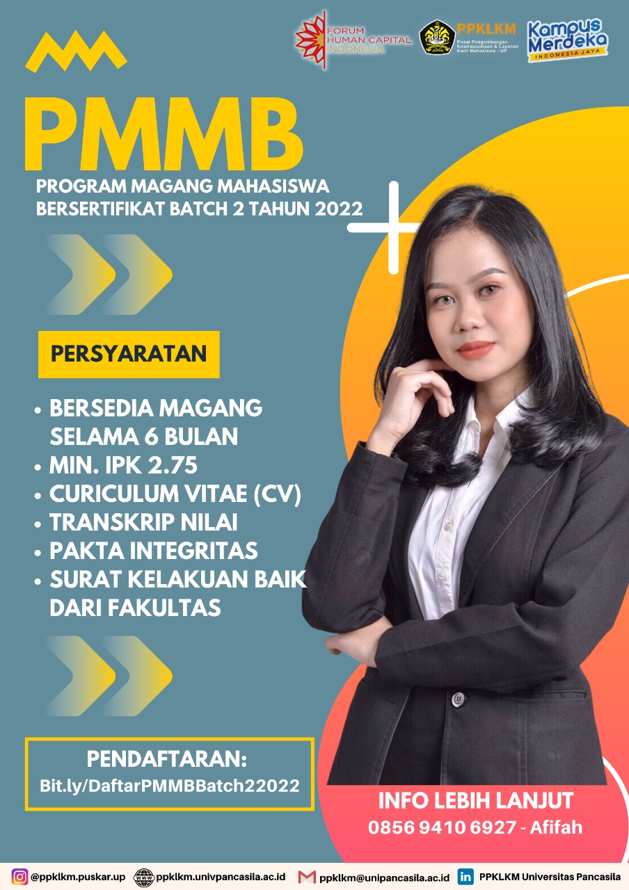 ðYuk, catat tanggalnya, ikuti persyaratannya, dan daftarkan dirimu melalui kami Pusat Pengembangan Kewirausahaan dan Layanan Karir Mahasiswa Universitas Pancasila