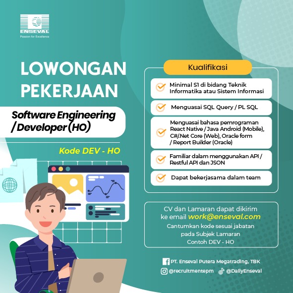 Lamar dengan mengirimkan CV dan Lamaran ke email : work@enseval.com