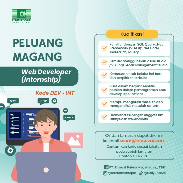 PT. Enseval Mega Trading sedang membuka peluang untuk magang dan lowongan pekerjaan.