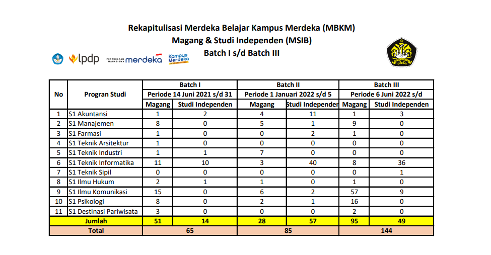 Rekapitulisasi Merdeka Belajar Kampus Merdeka (MBKM) Magang & Studi Independen