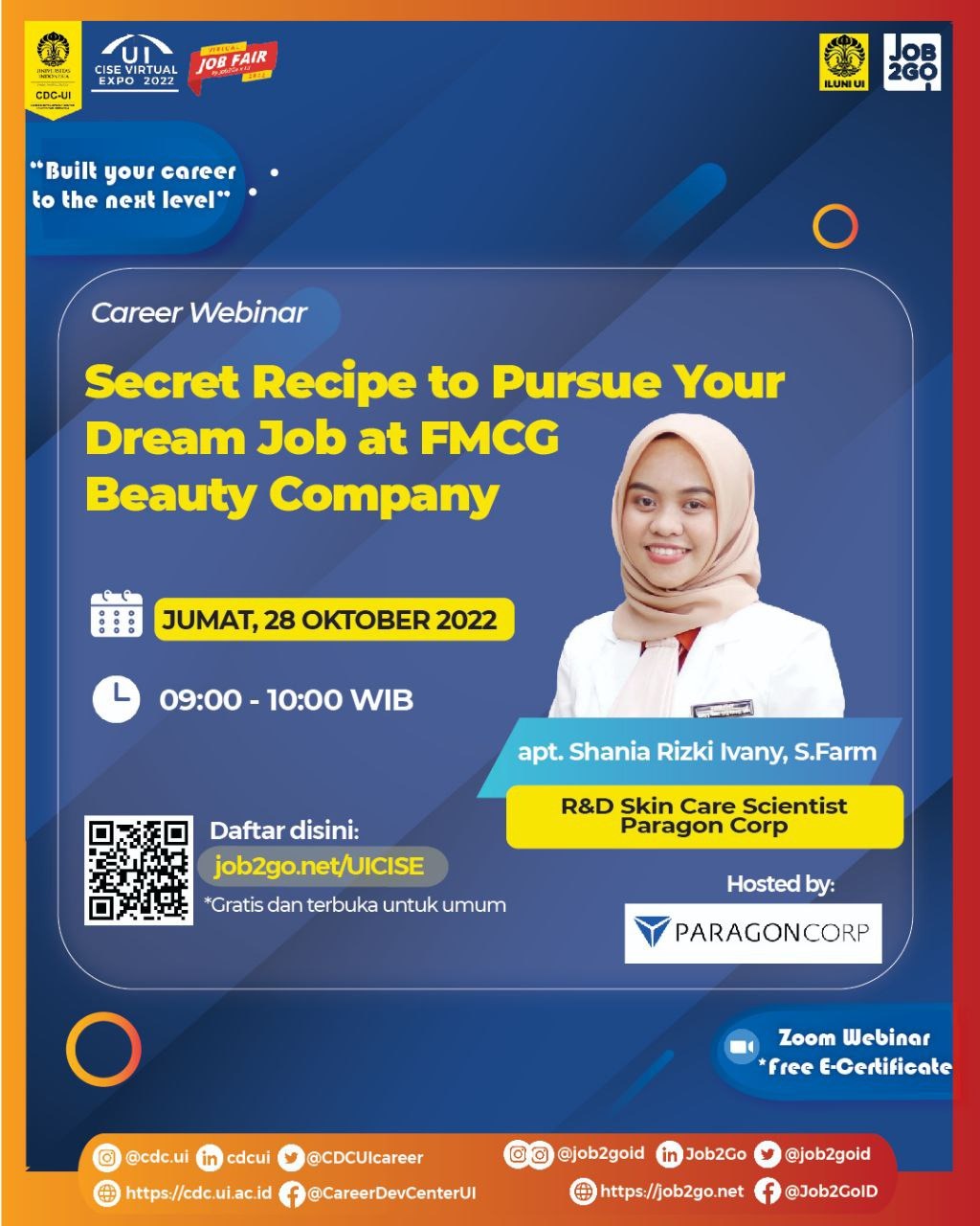 - UI Career, Internship, Scholarship & Entrepreneurship Virtual Expo 2022 yang diselenggarakan tanggal 25-29 Oktober 2022 merupakan event UI CISE yang dilaksanakan untuk ke-34 kalinya dan dilaksanakan secara virtual.