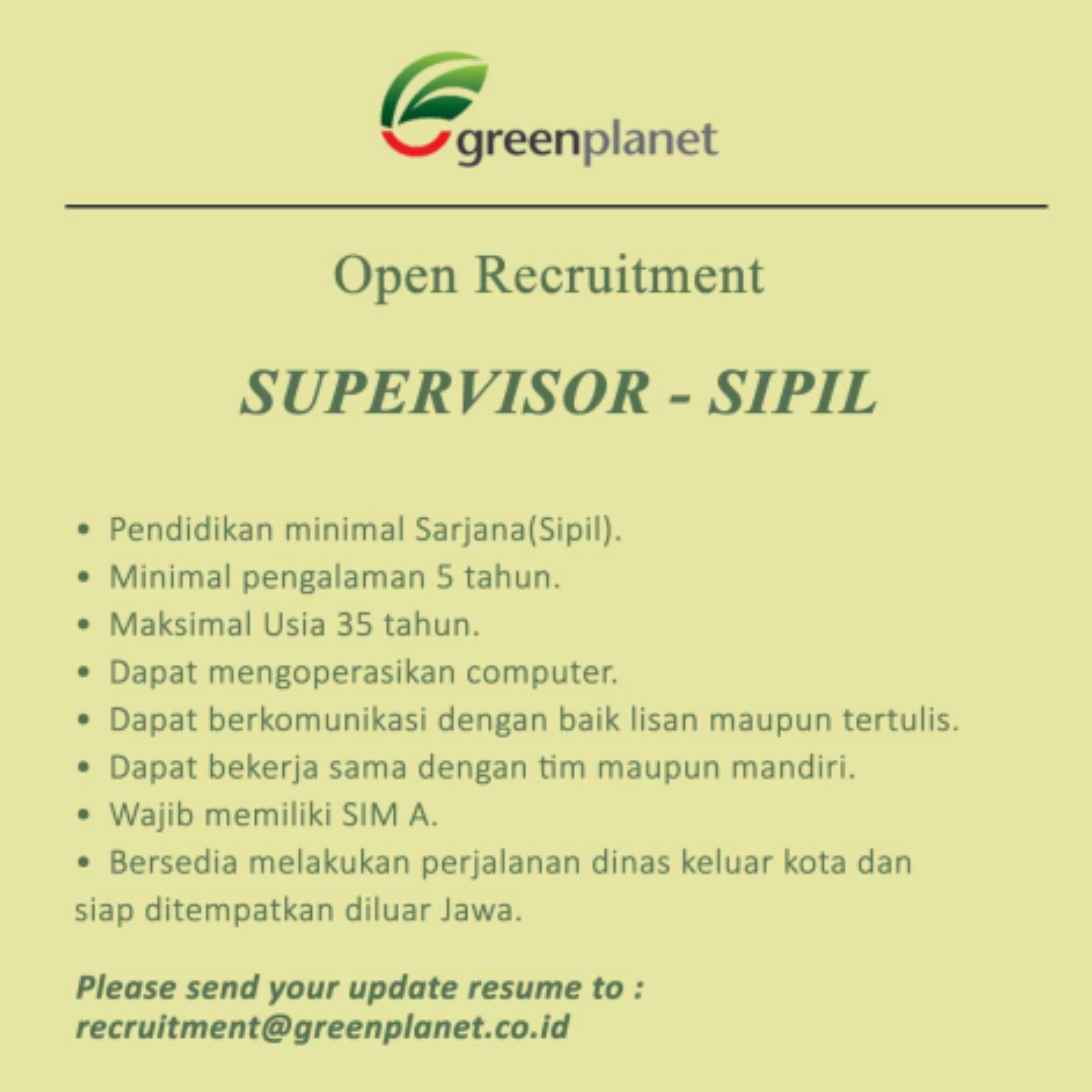 Lowongan Kerja PT Green Planet Indonesia