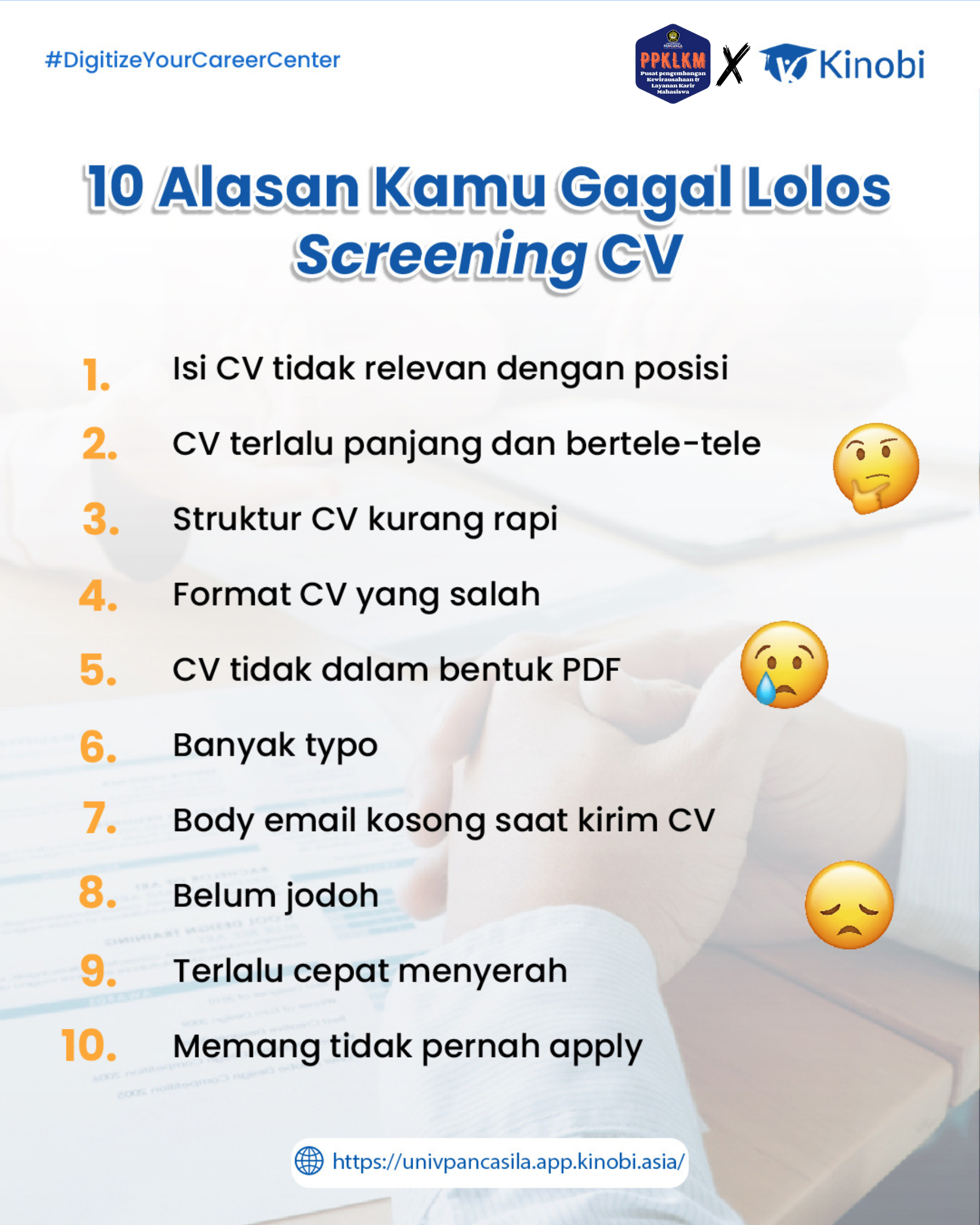 Persiapkan CV ATS-mu secara gratis dan Periksa Skor CV kamu secara unlimited melalui http://univpancasila.app.kinobi.asia